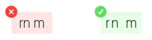 Il peut être difficile de déchiffrer les caractères si l’espacement entre chacun d’entre eux n’est pas suffisant. Par exemple, le r et le n peuvent être confondus avec un m s’ils sont trop proches.